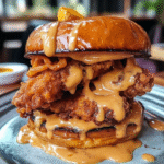 Indulge in the irresistible Flavorful Amazing Cinnamon Roll Fried Chicken Sandwich, where savory fried chicken meets sweet cinnamon rolls. This innovative dish features a crispy chicken breast nestled between soft, fluffy cinnamon roll buns, drizzled with a warm glaze that enhances every bite. Perfect for brunch or casual dinners, this sandwich is sure to impress your family and friends with its unique flavor combination and delightful presentation.