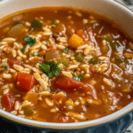Flavorful Stuffed Pepper Orzo Soup is a comforting, hearty dish that combines the essence of stuffed peppers in a delightful soup. With vibrant bell peppers, tender orzo pasta, and aromatic spices, this soup warms your soul and satisfies your hunger. Perfect for chilly evenings or family gatherings, it’s easy to make and packed with nutrients. Enjoy a bowl topped with fresh herbs and cheese for an extra flavor boost.