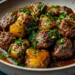 - Serve & Enjoy: Once cooked through, serve your garlic butter beef bites hot over rice or alongside vegetables for a complete meal!