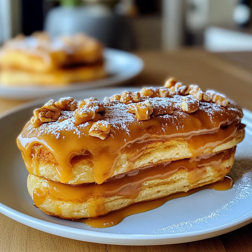 Your salted caramel pumpkin eclairs will undoubtedly be a showstopper on any dessert table! Consider arranging them on an elegant cake stand or tiered platter for added height. A drizzle of additional salted caramel sauce over top can enhance their visual appeal even more. For a festive touch during autumn gatherings, sprinkle some crushed pecans or walnuts on top of each eclair before serving—this adds both texture and flavor!