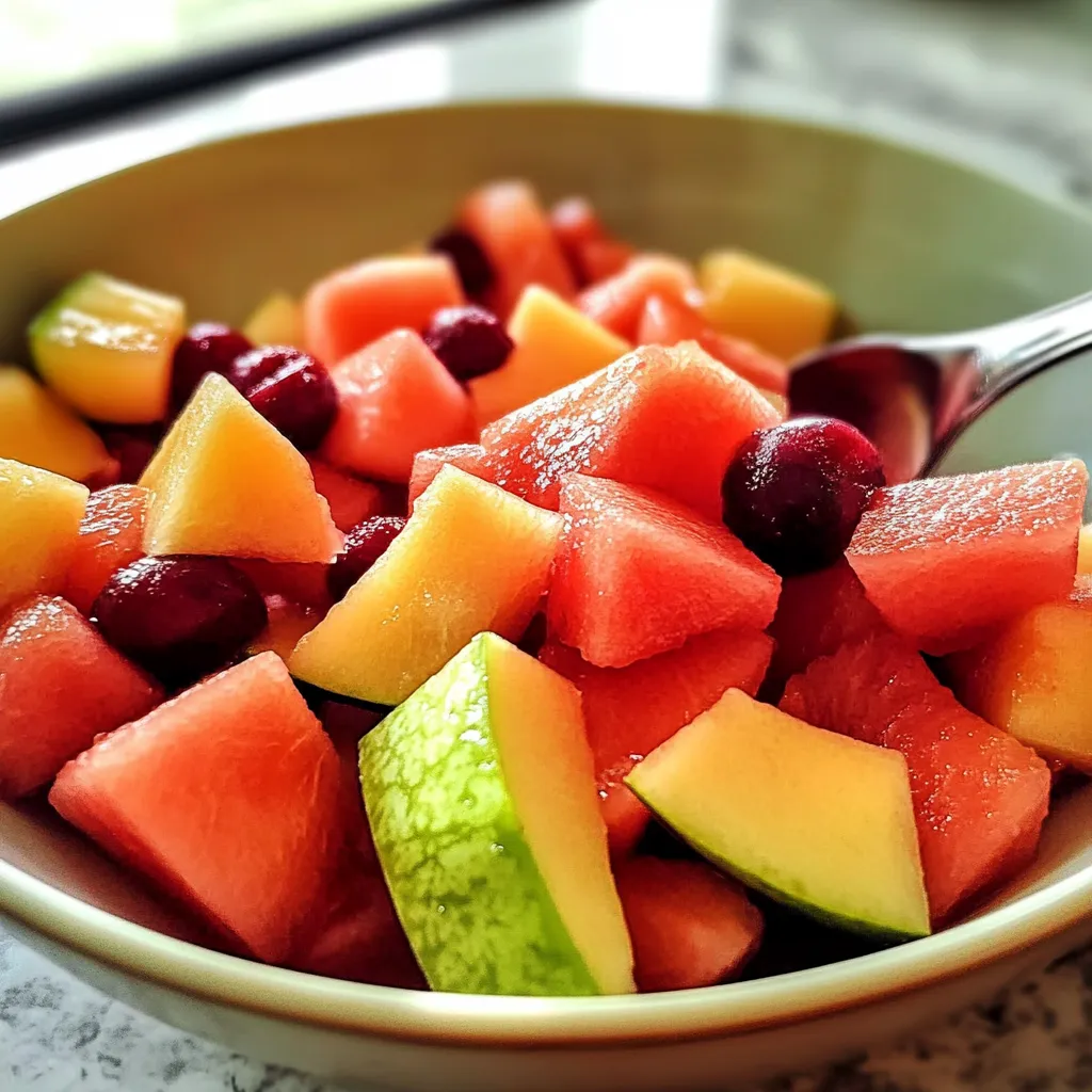 If you want your salad to be extra refreshing, chill your fruits in advance. This enhances their flavors when mixed together. Also, consider using ripe but firm melons; overly ripe fruits may become mushy when combined. For added texture and nutrition, incorporate some chopped nuts, like pistachios or almonds—this will give your salad an unexpected crunch! Lastly, if you’re making this ahead of time, store it without mint leaves, adding them just before serving to maintain freshness.