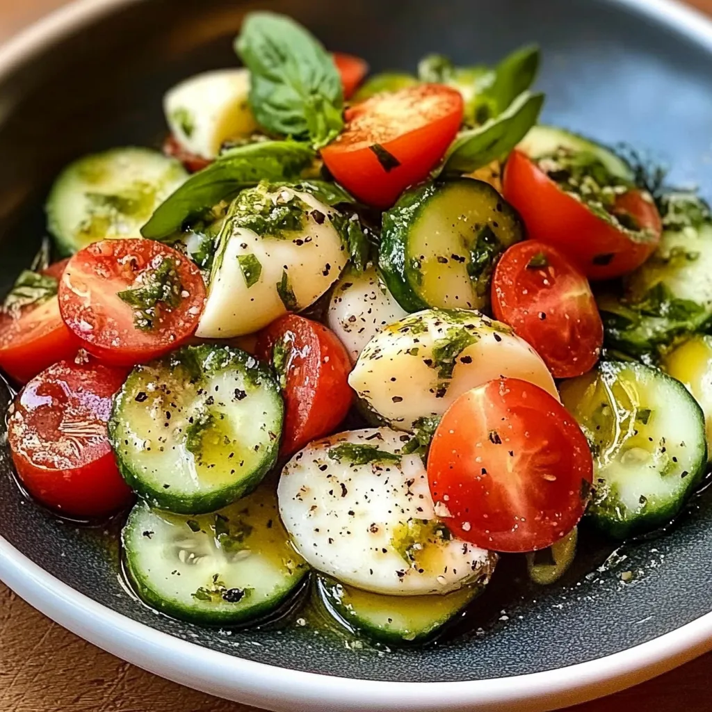 Elevate your summer meals with the Tempting Cucumber Caprese Salad. This vibrant dish combines crisp cucumbers, juicy cherry tomatoes, and creamy mozzarella, drizzled with balsamic glaze and olive oil for a perfect balance of flavors. Ideal as a light lunch or a side for gatherings, this refreshing salad is easy to prepare and sure to impress.