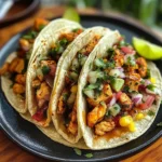 Your Scrumptious Chicken Street Tacos deserve an equally impressive presentation! Serve them on a rustic wooden board lined with parchment paper for a charming street-food vibe. Accompany your tacos with small bowls filled with various toppings like diced avocados, crumbled queso fresco, or pickled jalapeños for guests to customize their creations. Garnish with fresh herbs like cilantro or parsley sprigs for added color and freshness. Don’t forget vibrant lime wedges arranged around the plate; they not only look beautiful but also invite everyone to add that zesty kick!