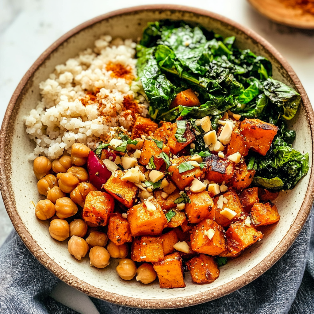 Grains: Quinoa or brown rice works beautifully as a base. These grains provide additional texture and heartiness, making the bowl more filling.